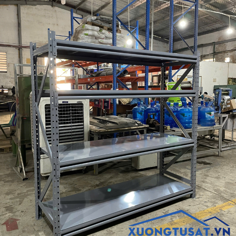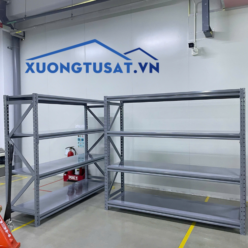 Các mẫu kệ sắt hạng trung của xưởng tủ sắt mang đến sự đa dạng về kích thước và kiểu dáng, đáp ứng linh hoạt nhu cầu lưu trữ hàng hóa tại nhiều không gian khác nhau. Trong đó, nổi bật và được nhiều doanh nghiệp lựa chọn chính là kệ trung tải V lỗ D1800 x S600 x C1800mm x 4 sàn – sản phẩm kết hợp giữa thiết kế hiện đại, tải trọng vừa phải và độ bền vượt trội.