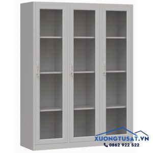 Kết cấu : Tủ hàn nguyên khối , cánh kính trên lùa , cánh sắt dưới mở . Có 2 khay di động . Khoá đầy đủ