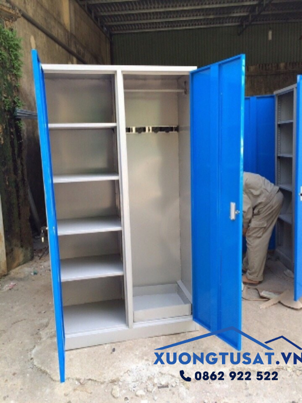 Xưởng Tủ Sắt đơn vị sản xuất các loại tủ sắt văn phòng, tủ sắt locker, tủ sắt mầm non và tủ sắt đựng dụng cụ vệ sinh. Đối với loại thiết bị tủ đựng đồ vệ sinh, đây là loại tủ sắt có thiết kế khác biệt so với những loại tủ sắt khác. Sự khác biệt ở đây nằm cấu tạo của tủ sắt nhằm phù hợp hơn với những vật dụng được lưu trữ trong ngăn tủ. Mẫu tủ sắt hai cánh đựng dụng cụ vệ sinh là sản phẩm sản xuất theo yêu cầu của khách hàng nên nó có màu sắc nổi bật hơn hẳn. Thường thì tủ sắt locker sẽ có màu ghi xám nhưng do yêu cầu khách hàng màu sắc tủ sẽ được thay đổi hoàn toàn.