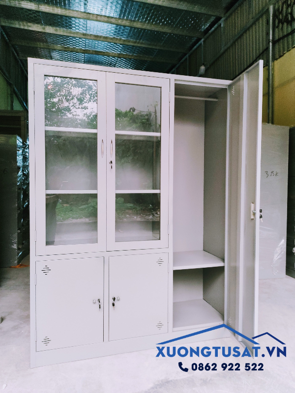 Đây là loại tủ sắt được kết hợp thiết kế giữa tủ sắt văn phòng và tủ sắt locker nên nó mang những đặc điểm nổi bật như 2 kiểu tủ trên. Có thể kể đến: