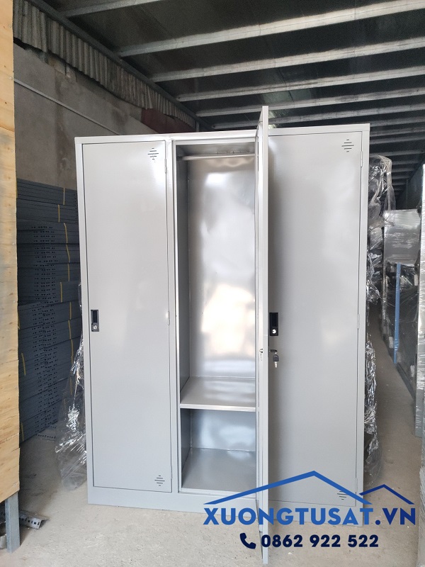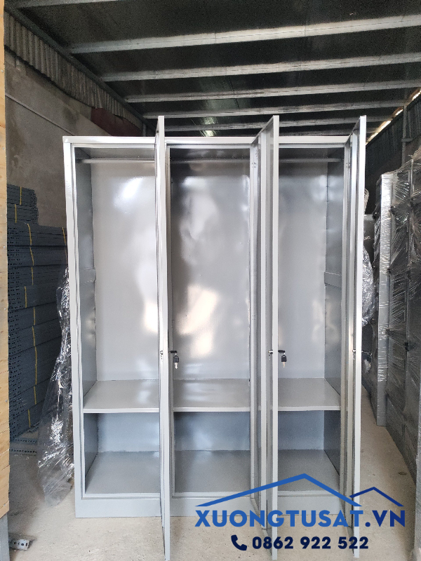 - Thứ tư: Với nhân viên văn phòng thường xuyên đi công tác, nhân viên ở các khu công nghiệp, nhân viên phòng thí nghiệm thì vấn đề thay quần áo diễn ra thường xuyên. Trong khi đó tủ sắt lại chiếm ít diện tích trong các phòng này. Vì vậy lựa chọn tủ sắt 3 cánh là vô cùng hợp lý